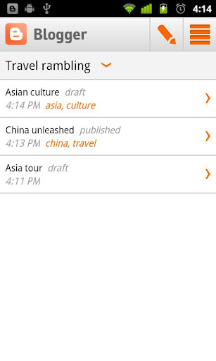 You can easily publish posts with pictures, labels and location information. Also, you can view the list of posts and if you have multiple accounts or blogs, you can easily switch between them.